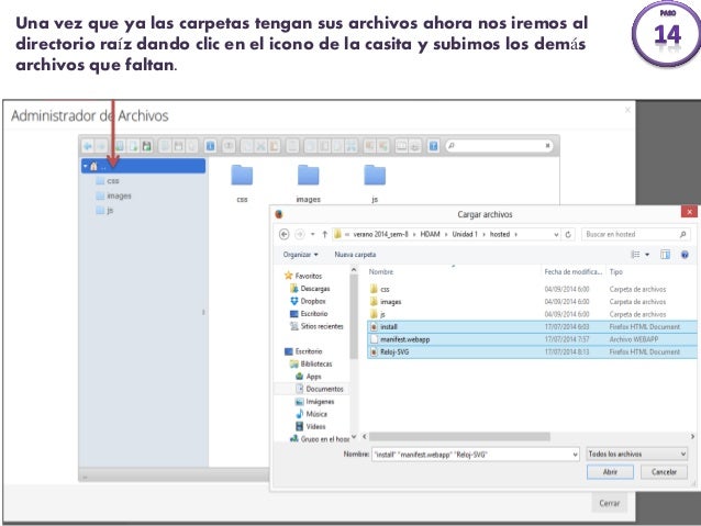 12.  Una vez que ya las carpetas tengan sus archivos ahora nos iremos al directorio raíz dando clic en el icono de la casita y subimos los demás archivos que faltan.