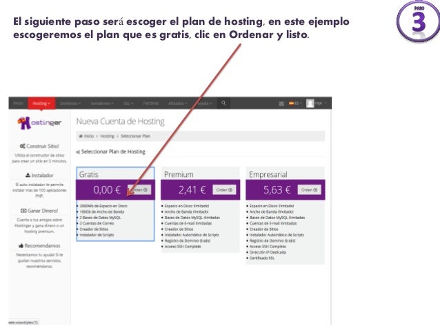 3.  El siguiente paso es escoger el plan de hosting.
